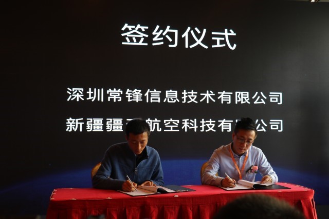 在發布會的最后環節,深圳常鋒信息技術有限公司先后與新疆疆天航空科技有限公司、中墾湖南控股集團、江蘇農村專業技術協會進行了簽約儀式,雙方就建立長期穩定的戰略合作關系達成了友好共識。